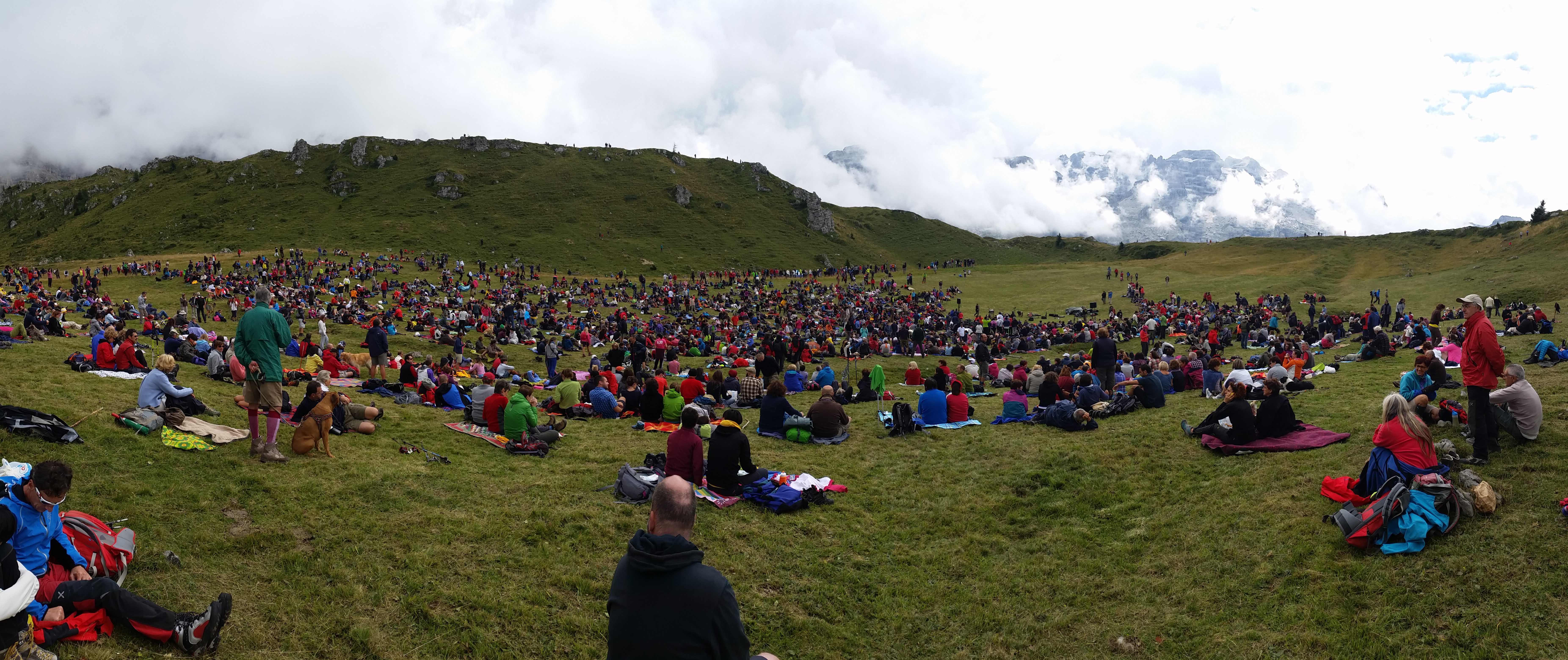 Che dire poi della cantante: è stata più forte di tutto e di tutti. Più forte delle nuvole che hanno oscurato la bellezza delle montagne circostanti: la gente guardava lei. Più forte dei pochi maleducati che si sono messi in piedi (nonostante le avvertenze iniziali di stare seduti) e ancora più forte degli altri maleducati che insultavano i primi: la gente ha ascoltato solo e solamente lei che ha zittito tutti semplicemente con la maestria della sua voce. E’ stata anche più forte della stanchezza…e voi direte, perché? Perché per tutta la discesa dal Camp Centener a Campo Carlomagno, un’ora e mezza, con alle spalle mio figlio  (quindi 10 kg abbondanti), non ho fatto altro che ricantare le melodie di “Sola” oppure il ritornello di cinquantamila….Fantastico.