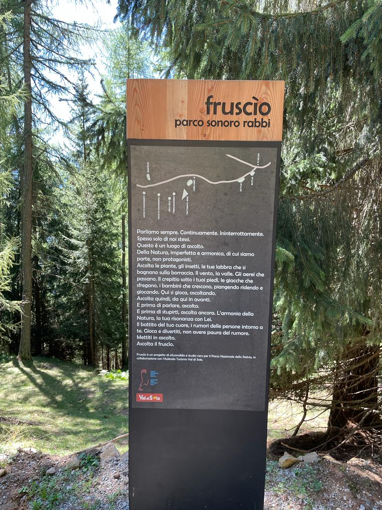 Domenica 21 agosto 2022, l’occasione di una stupenda giornata di sole unita all’idea di fare una gita con la famiglia, si è trasformata nella vistia al parco sonoro “Fruscìo”, ideato da Emanuele Lapiana in collaborazione con Apt Val di Sole e Parco Nazionale dello Stelvio.